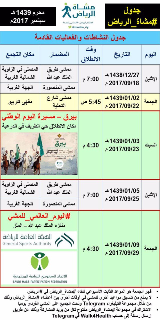 جدول أنشطة مشاة الرياض للربع الأول 1439 هجري