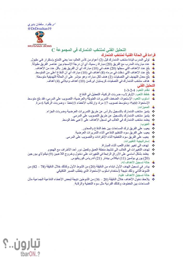 التحليل الفني لمنتخب الدنمارك في المجموعة C بقلم د. سلطان بديري