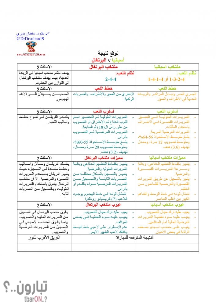 توقع نتيجة المباراة - أسبانيا V البرتغال